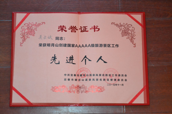 10月15日,国家旅游总局正式通过明月山旅游区成为国家AAAAA级旅游景区,成为赣西第一家国家AAAAA旅游景区。11月6日,明月山风景区召开成功创建国家AAAAA旅游景区总结表彰大会,明月山消防大队荣获明月山创建国家AAAAA级旅游景区工作先进单位,教导员吴云斌荣获先进个人。