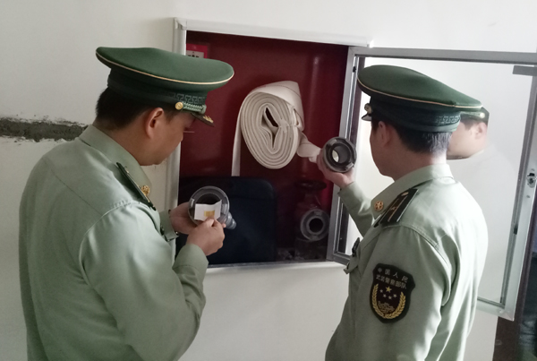 检查中,支队消防监督执法人员认真对御品滨江内使用的气体灭火设备、火灾报警控制器、消防应急照明灯、安全出口标志、消火栓箱、防火门、灭火器、水枪、水带等常用的消防产品进行仔细检查。对各类消防产品铭牌标志、产品身份证标识、产品本体实物3C标识、出厂合格证明文件、厂家供货证明、产品说明书等相关资料的进行了一致性核查。