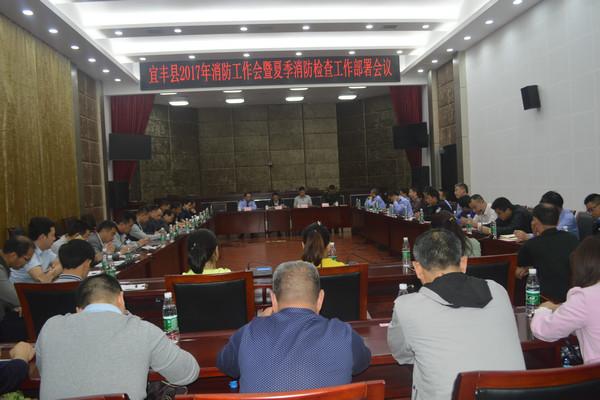 为贯彻落实省、市消防工作会议和夏季消防检查工作动员部署电视电话会议精神,总结2016年度消防工作,分析研判消防安全形势,部署2017年消防工作任务,以及动员部署夏季消防安全工作。4月25日上午,宜丰县政府组织召开2017年度全县消防工作暨夏季消防安全检查动员部署会议。副县长、公安局局长郑斌同志,县公安局副政委黄杰勇同志,各乡镇政府分管消防工作领导、县消防安全委员会成员单位、县消防安全重点单位负责人,县消防大队官兵等共计79人参加了会议。会议由县政府办副主任彭晓辉主持。